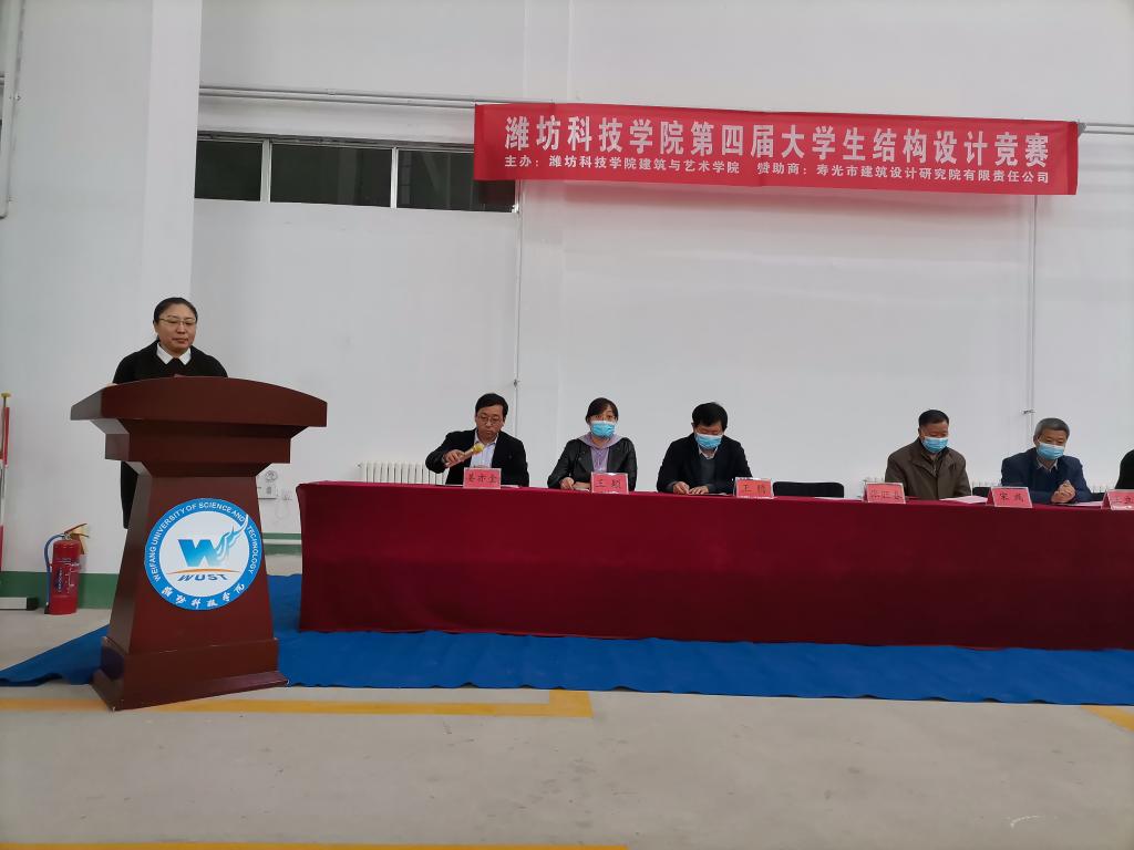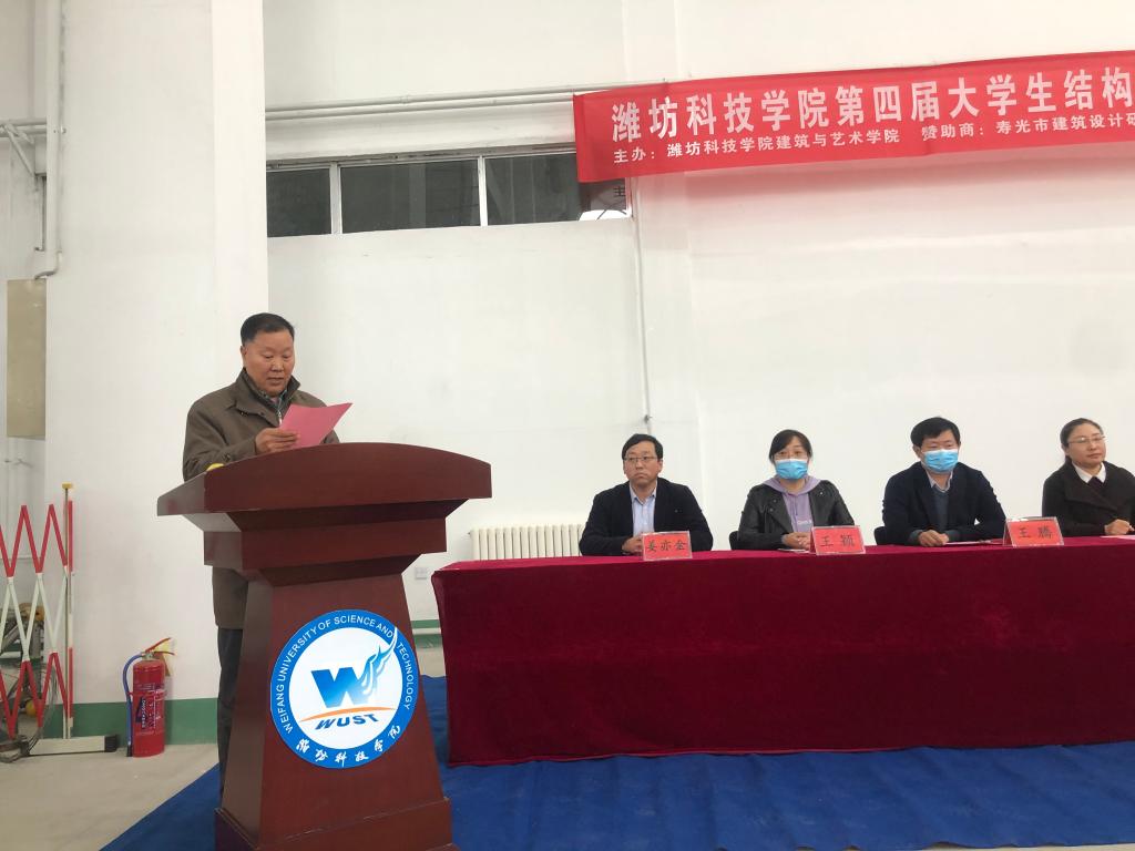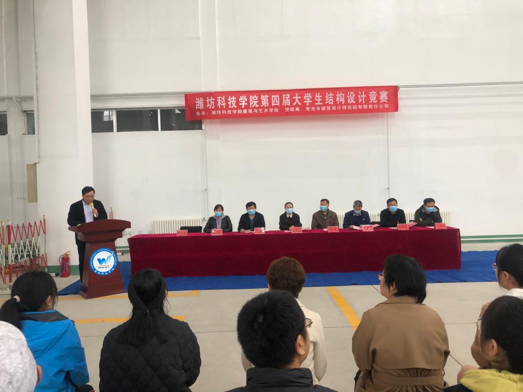 4月2日下午,山东省第十三届大学生结构设计竞赛校内选拔赛暨潍坊科技学院第四届大学生结构设计竞赛在建筑结构实验室举行。我校学术委员会副主任宋彧,建筑与艺术学部主任张旺春,寿光市建筑设计研究院副院长王立茂,建筑与艺术学院、建筑与设计学院相关负责人,教师、学生代表共计120余人参加。建筑与艺术学院党支部书记姜亦金主持。