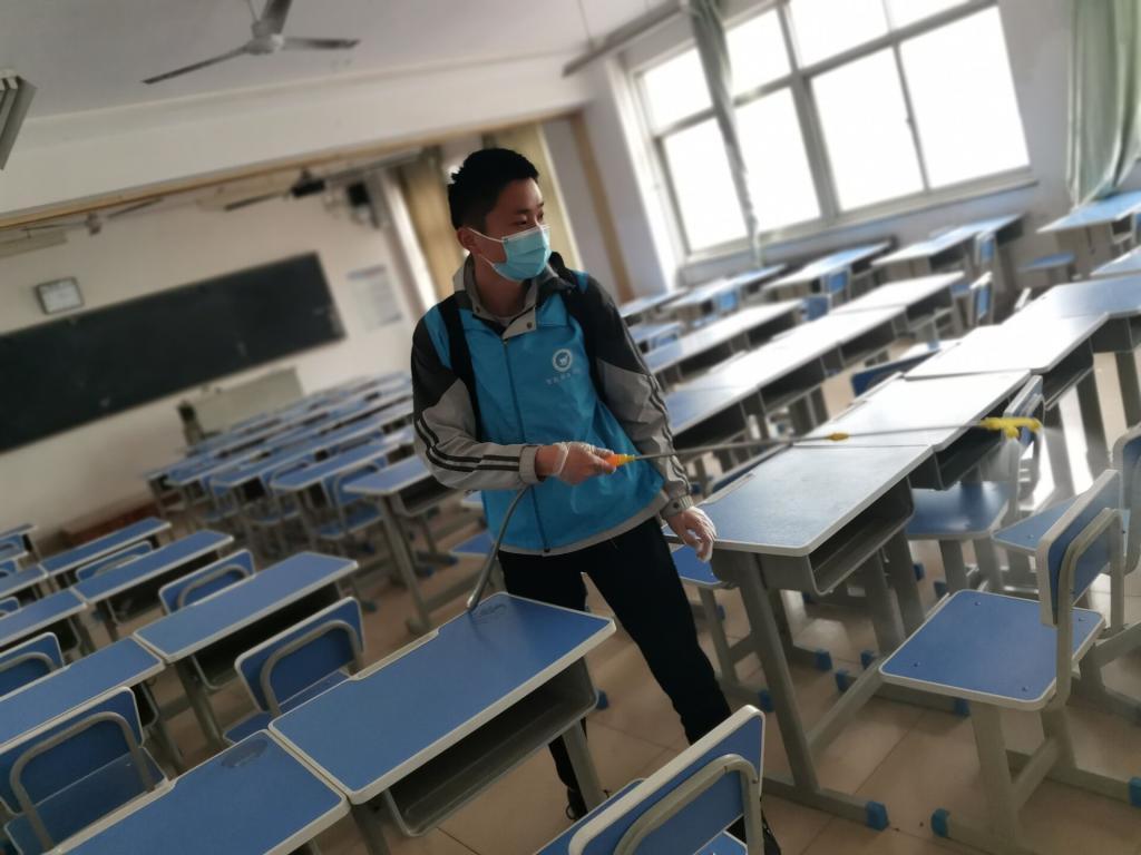 志愿者们对教室各角落、垃圾桶堆放点、楼道、厕所等地进行了全面彻底的消毒,不放过一个死角。消毒过程中力求做到认真、仔细,积极为师生创造一个安全的卫生环境,为师生健康保驾护航。