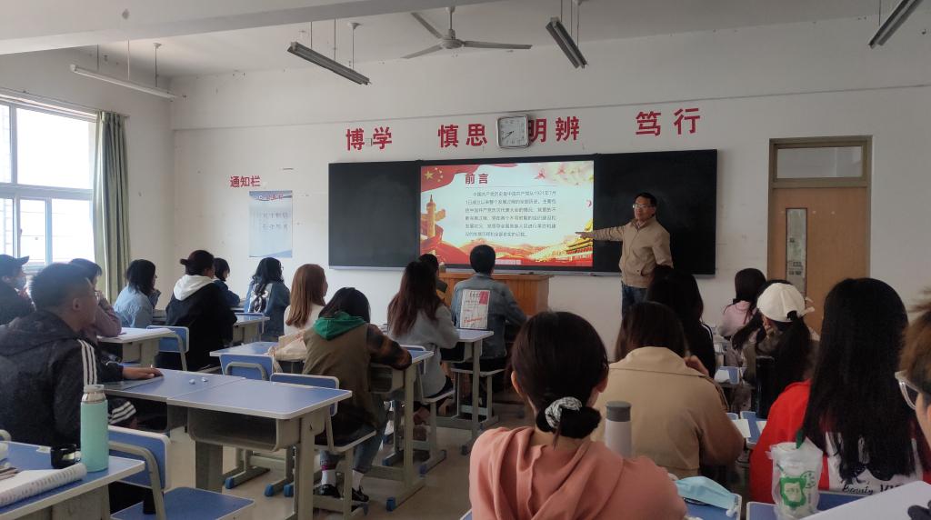 党史课上,导师们通过大量鲜活的历史图片、历史故事,采用PPT、视频学习等方式,向学生们系统再现了中国共产党从诞生到不断发展壮大的辉煌历程,深刻阐述为什么只有共产党才能救中国,才能带领中国人民站起来、富起来、强起来。