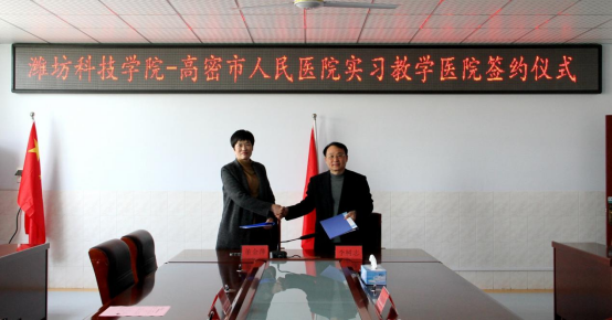 4月16日,我校护理学院与高密市人民医院签订教学实习合作协议。护理学院院长董金萍,高密市人民医院党委副书记、院长李树志参加签约仪式。