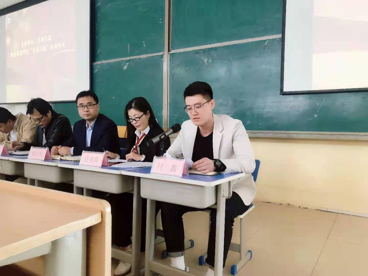 青年教师付鑫发言。作为一名青年教师,迫切期待在骨干教师的带领下,尽快成熟、尽快完善。通过“青蓝结对”平台,认真学习骨干教师精于教书,勤于育人,一丝不苟,严谨治学,刻苦钻研,诲人不倦的工作作风和精神,争取做到“一年合格、两年达标、三年新秀、四年优质、五年骨干”。