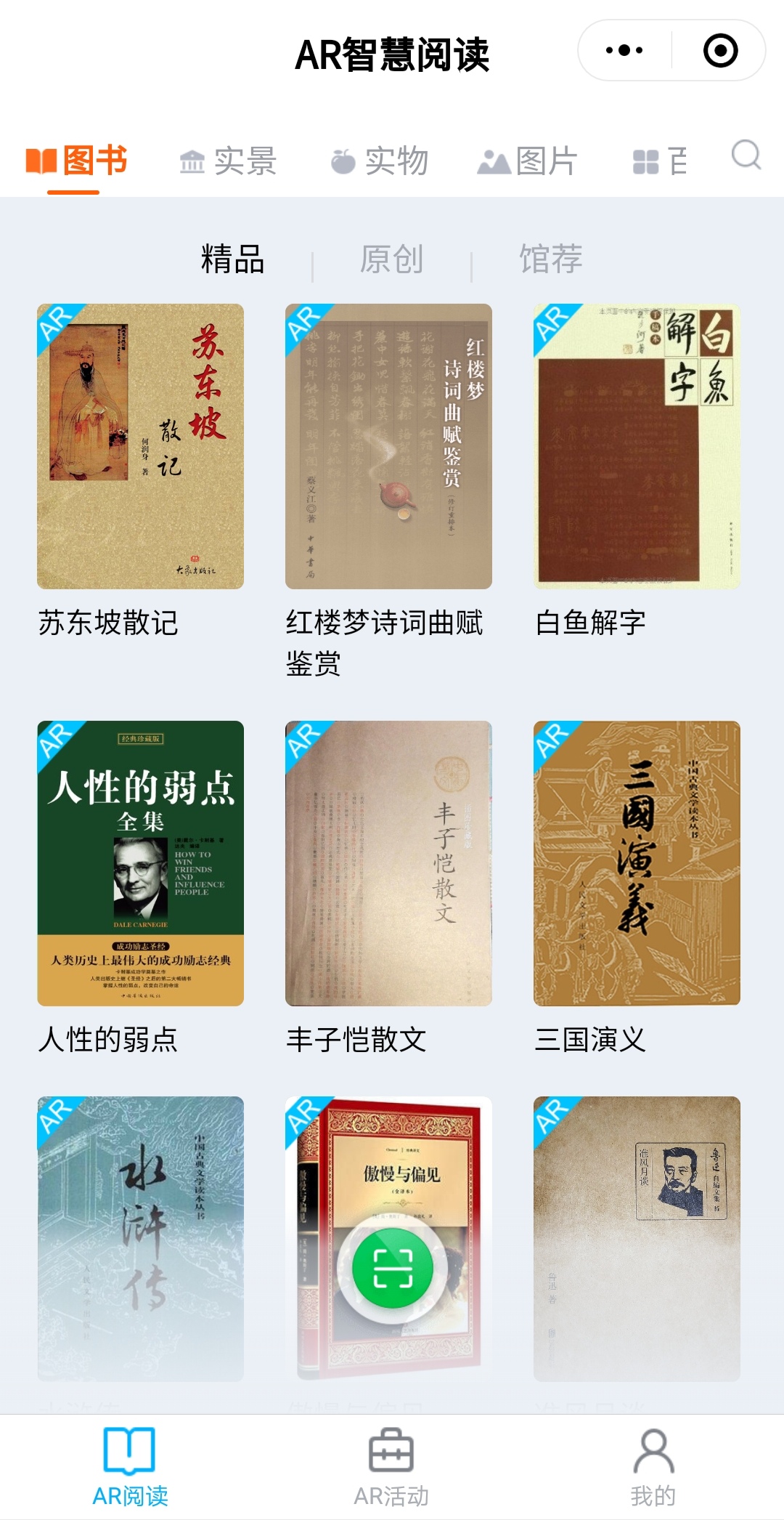 “AR智慧阅读”是通过先进的科技技术与多媒体内容、阅读结合起来的综合服务平台,运用人工智能的识别技术和增强现实技术,读者可通过小程序识别纸质图书或者图片等,轻松获取多媒体的阅读内容,为读者营造动态交互、沉浸式体验的知识获取与交流环境。