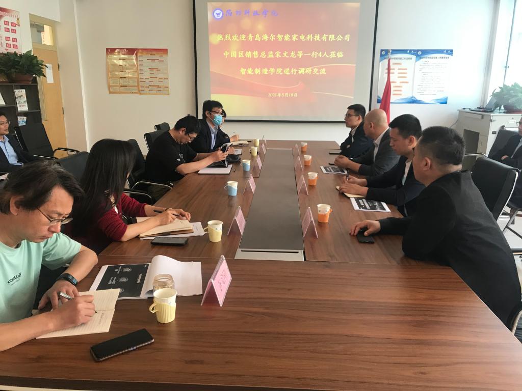 5月18日,青岛海尔智能家电科技有限公司中国区销售总监宋文龙一行来我校智能制造学院走访座谈,就共建产业学院、产教融合、协同育人、5G物联实训基地建设等问题展开深入交流。