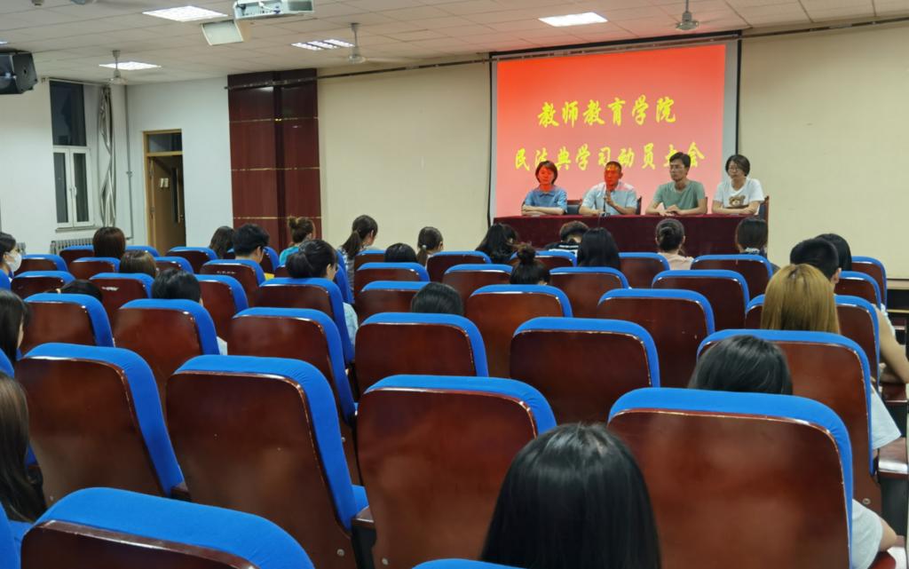 为切实加强青年大学生法律意识,提高自我保护能力。6月6日晚,教师教育学院召开《民法典》学习动员大会,教师教育学院党支部副书记李法鹏就《民法典》知识学习进行专题解读和安排部署。
