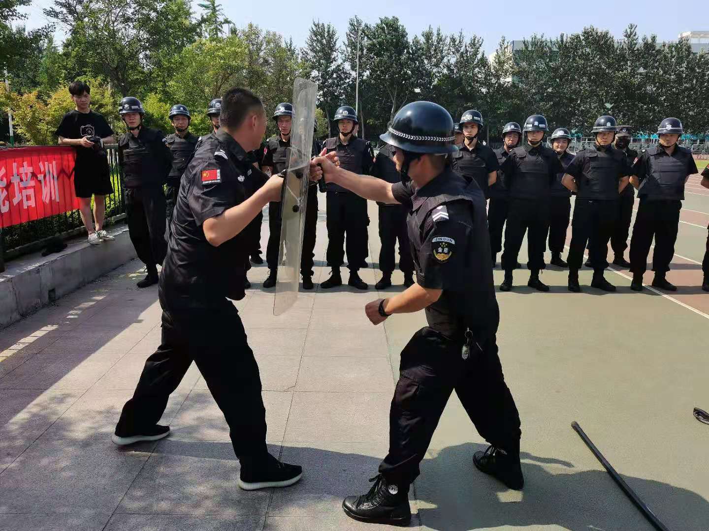 为切实增强安保人员消防应急处置能力与自我保护技能,6月21日校保卫处分别在学校北操场、机电实训中心楼前广场组织全校安保人员开展消防知识与技能培训。相关保卫干部、全体保安队员参加。