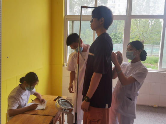 在志愿者的引导下,新生分别进行身高、体重、视力、血压、内科、外科等项目检查。志愿者们熟练操作各种设备,逐一为新生进行身高体重测量、血压测量、视力测量、变色度测量等,体检工作有条不紊进行,现场规范有序。