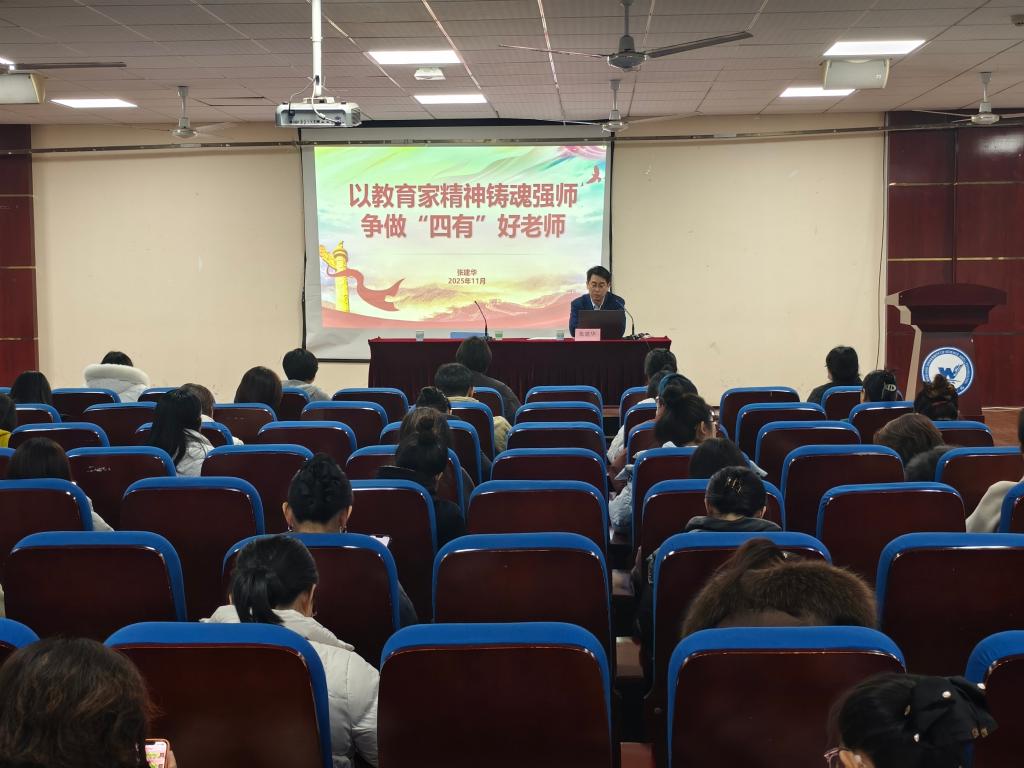 为进一步加强师德师风建设,11月17日,教师工作部部长张建华应邀至教育学院为全体与会教师作题为“以教育家精神铸魂强师,争做‘四有’好老师”的专题报告。