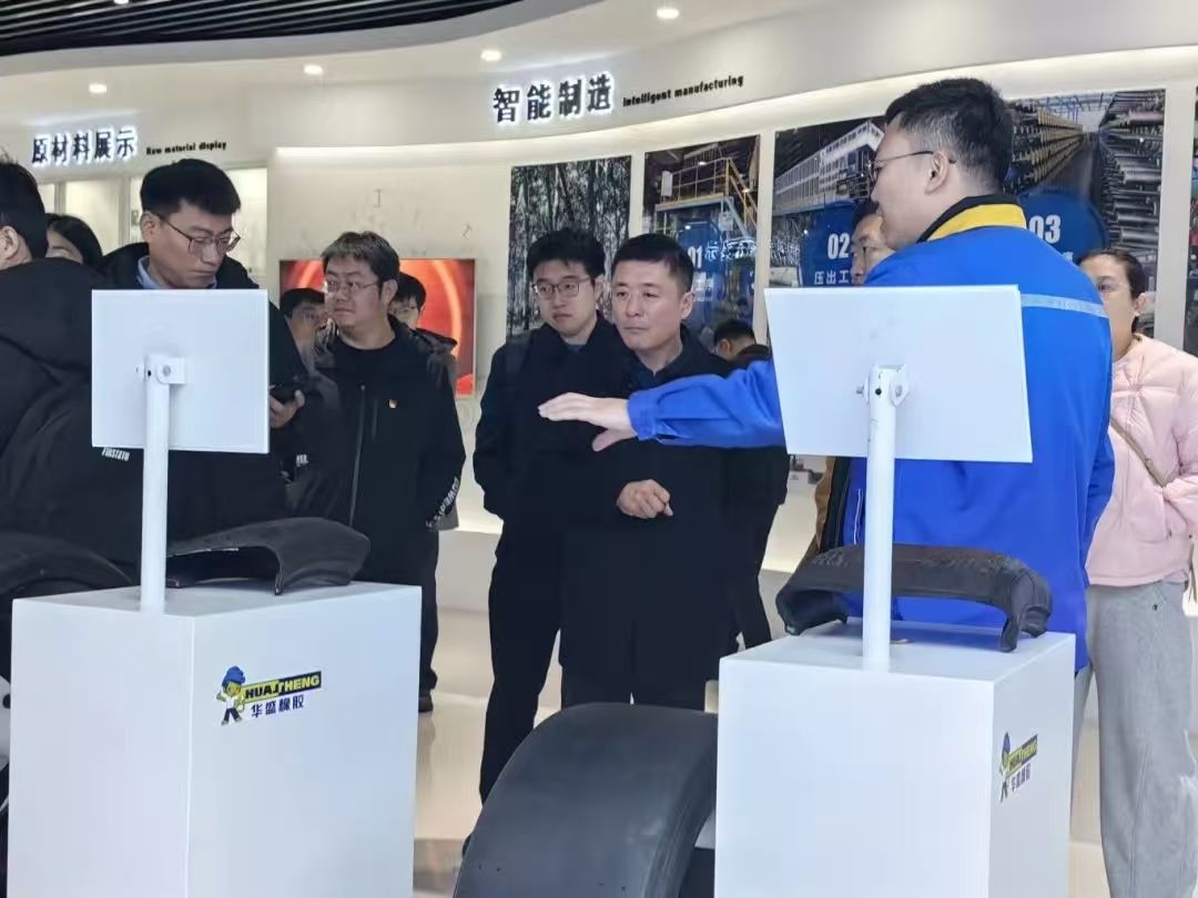 师生们首先参观了研发中心的成果与材料展示厅,从天然橡胶、合成橡胶到各类高性能添加剂,丰富的原料展示系统呈现了橡胶产品的科技脉络。企业负责人讲解不同材料在轮胎及建筑制品中的关键作用,阐释“小小分子”如何通过科学配比成就“力扛千钧”的工程奇迹。在智能建造成果展区,搭载传感技术的“智能轮胎”可实时监测压力、温度与磨损数据;用于大型基建的减震支座则展示了高分子材料在提升建筑抗震性能方面的前沿应用。这些实例让课本知识变得生动可感,有效激发了同学们的专业兴趣与创新意识。