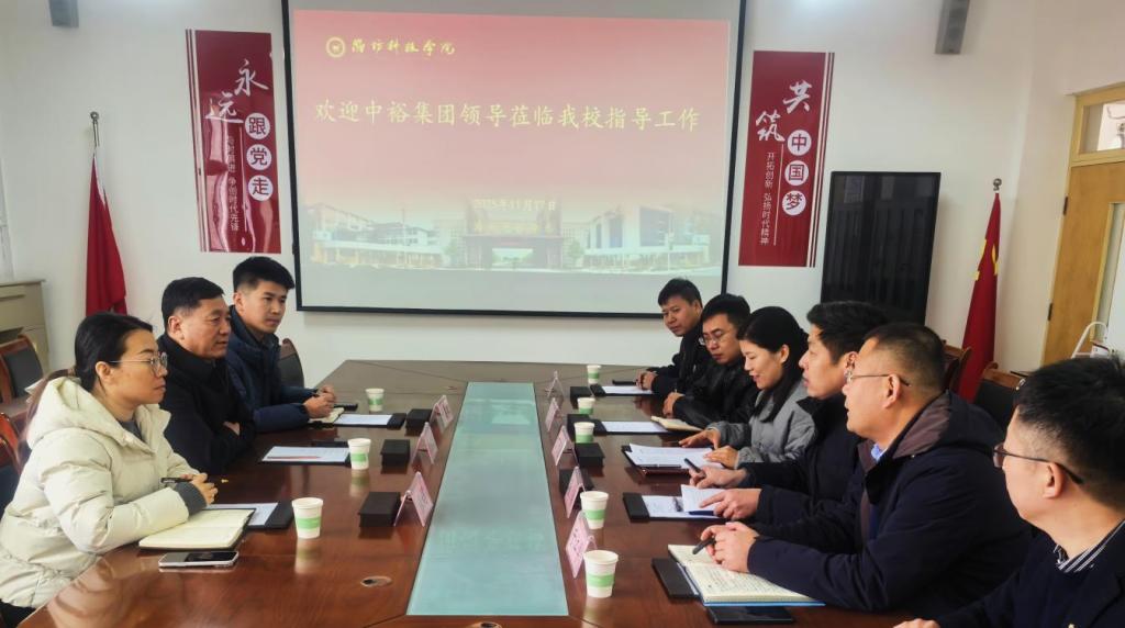 为深化产教融合一体化,精准对接产业人才需求,助力学生高质量就业,11月17日,经济管理学院与中裕集团校企合作交流会在210会议室召开。会议由经济管理学院党委书记于江学主持,学校招生与就业处副处长董琳、经济管理学院院长丁莹莹、中裕集团相关负责人及学院教师代表等列席参加。