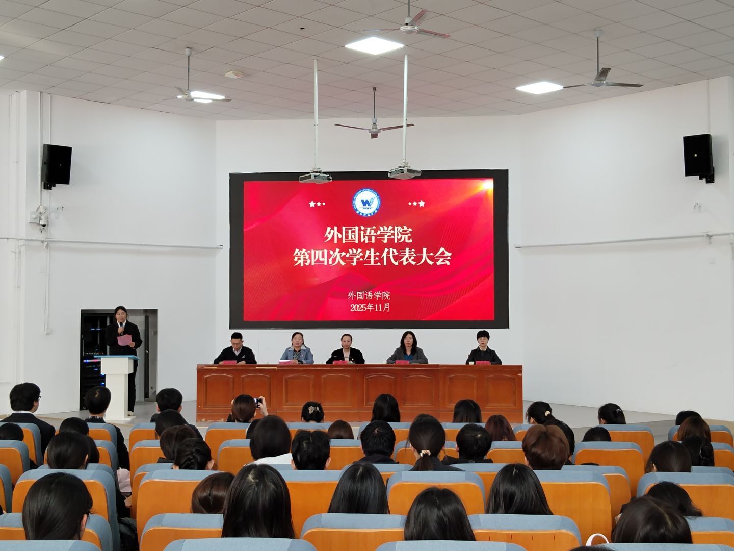 为推进学院民主管理,发挥学生代表主体作用,11月14日,外国语学院第四次学生代表大会在学校报告厅召开。学院党总支书记张丽、副书记郝磊、副院长崔月霞等领导及全体辅导员、学生代表参加会议。