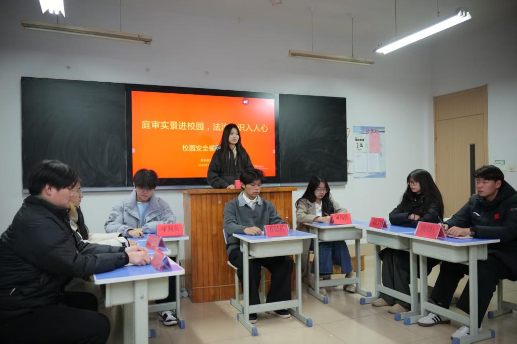 学院开展海姆立克急救法专题培训会,讲师通过理论讲解、实物演示与手把手指导,拆解操作要领与适用场景,同学们分组模拟实操,熟练掌握突发状况自救互救技能;同步举办校园安全手抄报创作展示活动,同学们围绕各类安全主题,创作主题鲜明、视觉生动的作品,通过校园集中展示让安全理念直观传递、深入人心。此外,学院以校园常见安全纠纷为蓝本开展模拟法庭,让同学们扮演不同角色完整还原庭审流程,沉浸式体验帮助大家深入了解法律程序,明晰校园安全的法律责任与边界;组织学生志愿者排查校园消防设施、电气设备、疏散通道等重点区域,对隐患登记造册、及时上报,从源头防范安全风险。