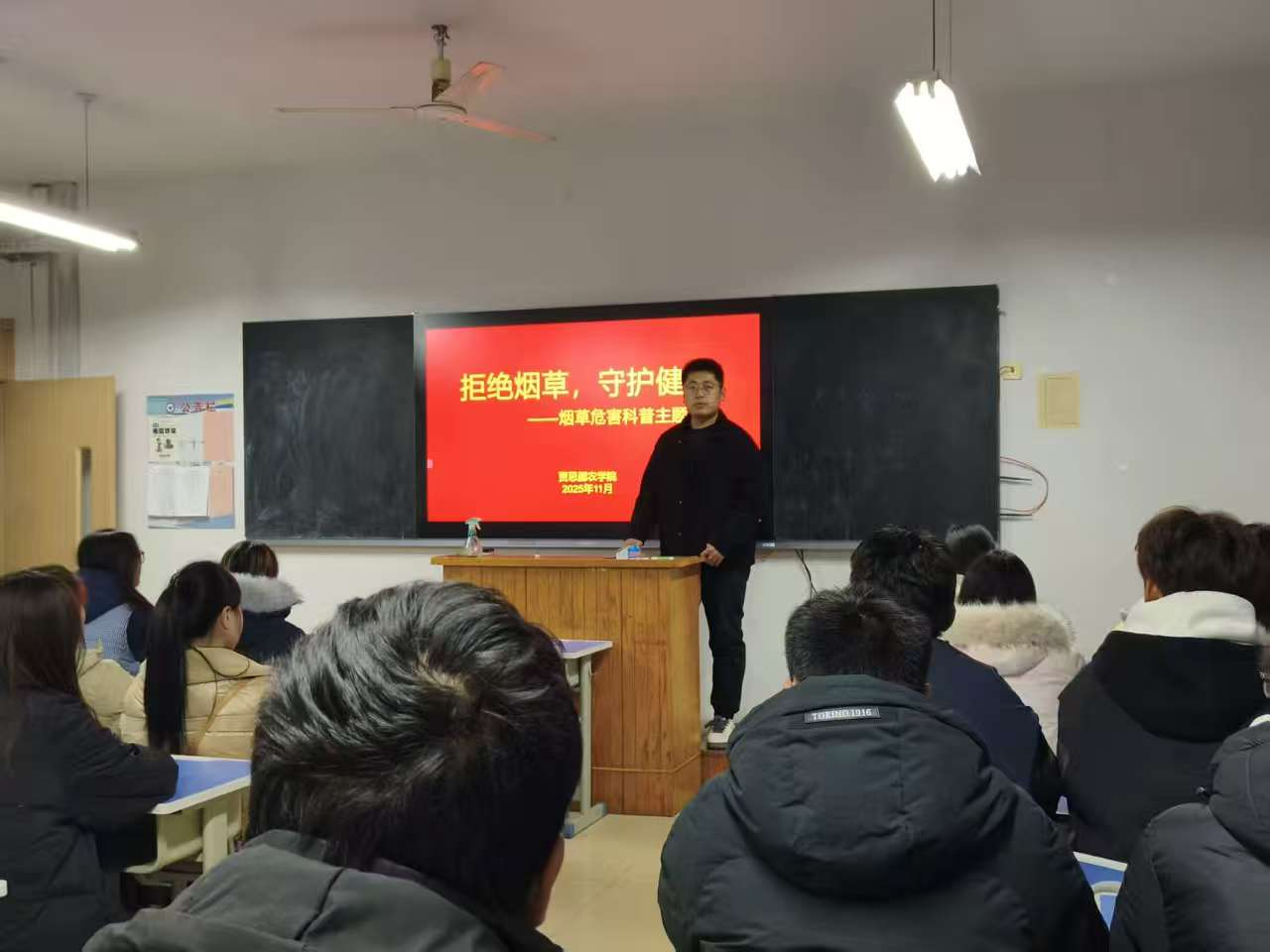学院组织各班级开展烟草危害科普班会活动,通过详实的数据、真实的案例,向同学们普及烟草对人体健康、校园环境及公共卫生的危害,引导大家树立“远离烟草,珍爱生命”的健康理念。禁烟连环画册制作活动让同学们发挥绘画特长,以生动的画面、简洁的文字,描绘烟草危害与禁烟场景,让禁烟理念通过艺术作品深入人心,增强传播感染力。另外学院还举办无烟校园横幅签名活动,让师生们纷纷在“拒绝烟草,共建无烟校园”的横幅上签下名字,以庄重的仪式感作出禁烟承诺,彰显践行健康生活的决心。