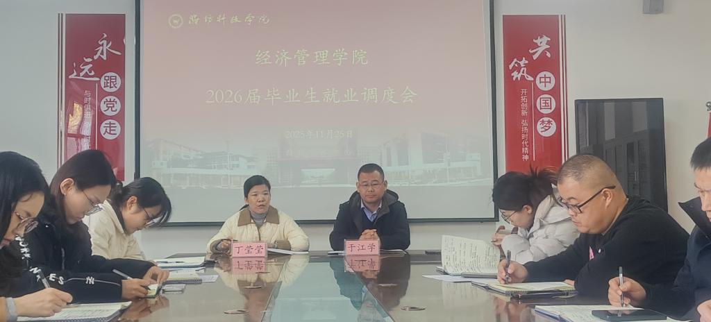 为进一步推进毕业生就业工作,实现高质量就业,经济管理学院于11月25日上午举行“2026届毕业生就业工作调度会暨2025届毕业生就业工作总结会”,经济管理学院院长丁莹莹、书记于江学及2026届全体毕业班辅导员及2025届本科毕业班辅导员参加。