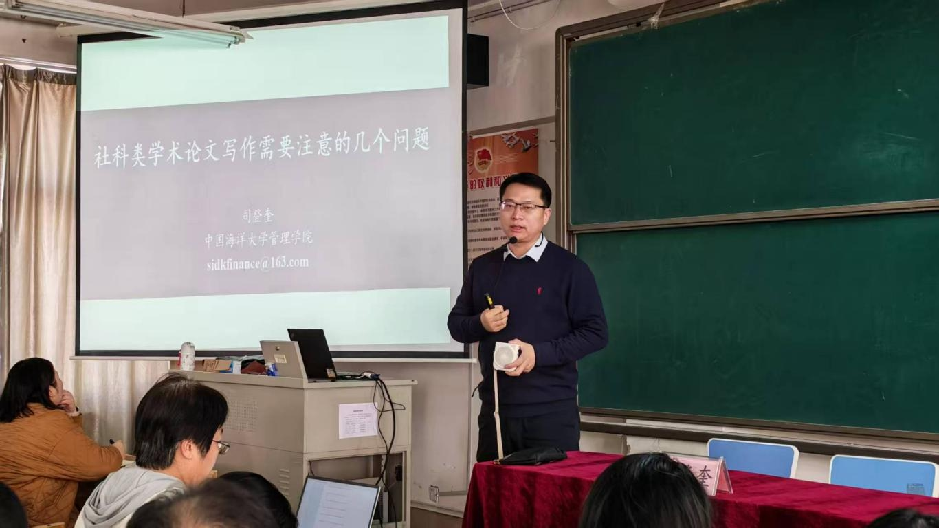 为进一步提升教师的学术研究能力,规范社科类学术论文写作,11月26日,经济管理学院在421教室举行社会科学研究论文写作能力提升专题学术讲座。讲座特邀中国海洋大学司登奎教授担任主讲,经济管理学院副院长刘冰主持,全体教师参加。