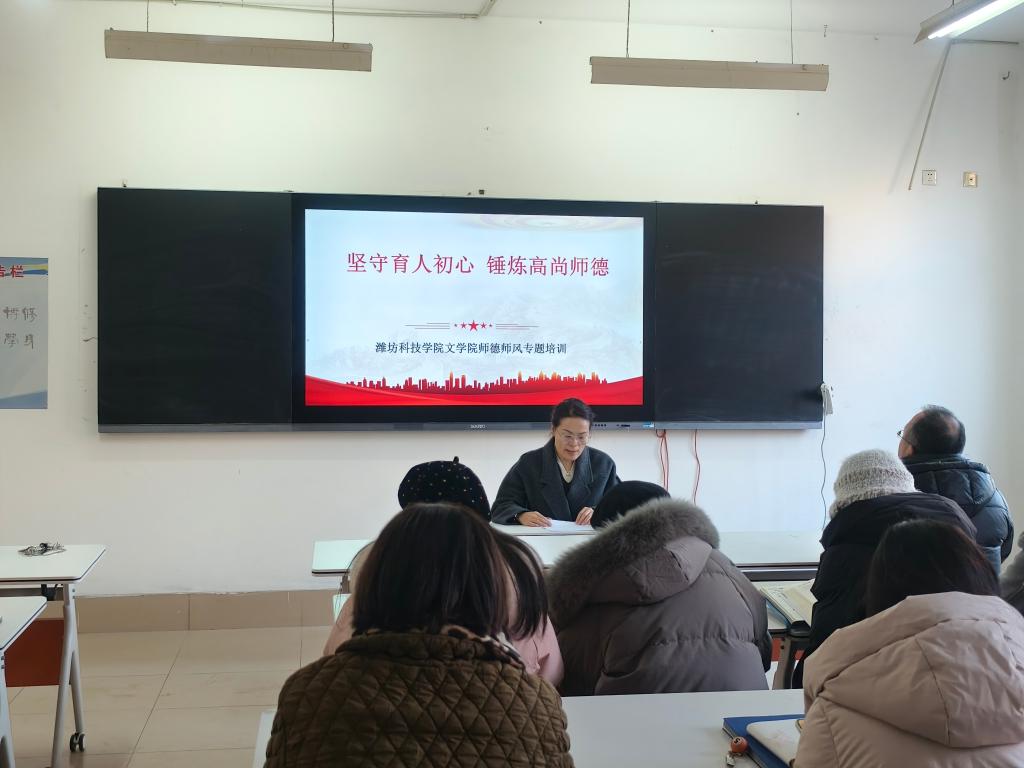 为强化教师队伍思想政治与职业道德建设,12月3日,文学院开展了“涵养师者匠心,铸就文苑风骨”师德师风专题培训活动。本次活动由文学院党支部书记王燕玲主持开展,学院全体教师参与。