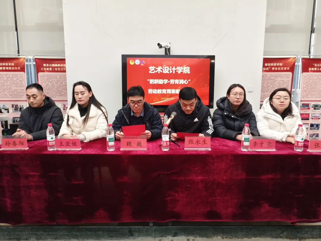 为深化劳动教育实践成果、弘扬奉献担当精神,12月1日,艺术设计学院于一站式学生社区举办“躬耕励学·劳育润心”劳动教育周表彰大会,艺术设计学院党总支书记魏巍、党总支副书记张永生、学生科科长王亚姐、团总支书记李才荣、辅导员孙春阳、张君老师及学生代表共同参加。