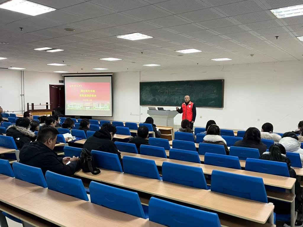 黄长永结合近年来多起实验室安全事故典型案例,深刻剖析了违规操作、管理疏漏等隐患成因,着重强调各实验室主任作为安全第一责任人,必须切实履行管理职责,将安全防控融入日常工作全流程。随后,针对核心安全要点进行系统解读,明确日常安全巡查频次、危险源辨识标准,用电规范,易燃易爆试剂储存使用禁忌。黄长永在总结中要求,要以此次学习为契机,进一步强化责任担当,完善实验室安全管理制度,定期组织内部培训与应急演练,持续提升全员安全意识和应急处置能力,切实筑牢科研教学安全屏障。
