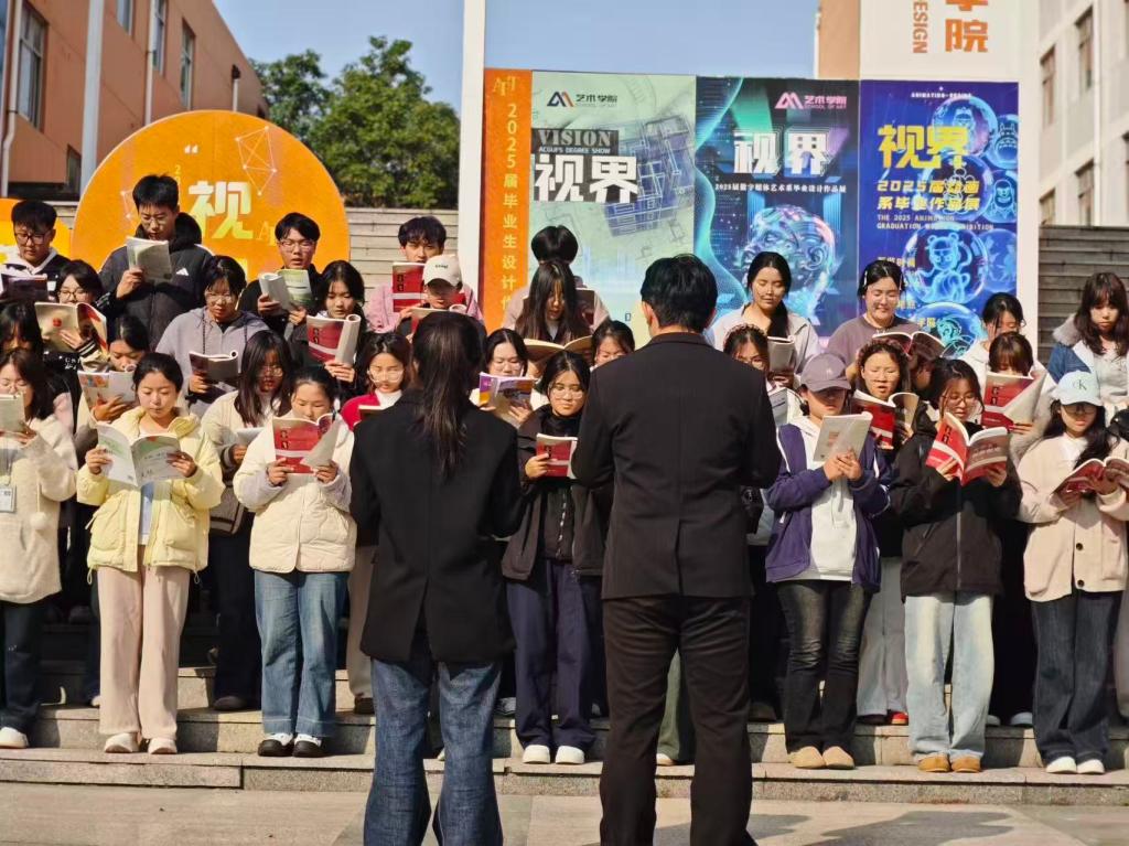 艺术设计学院举办“晨诵宪章,心铭法治”主题晨读活动,在师生代表的带领下,全体同学齐声诵读宪法核心条款,琅琅书声中,抽象的法条逐渐内化为坚定的法治信念。