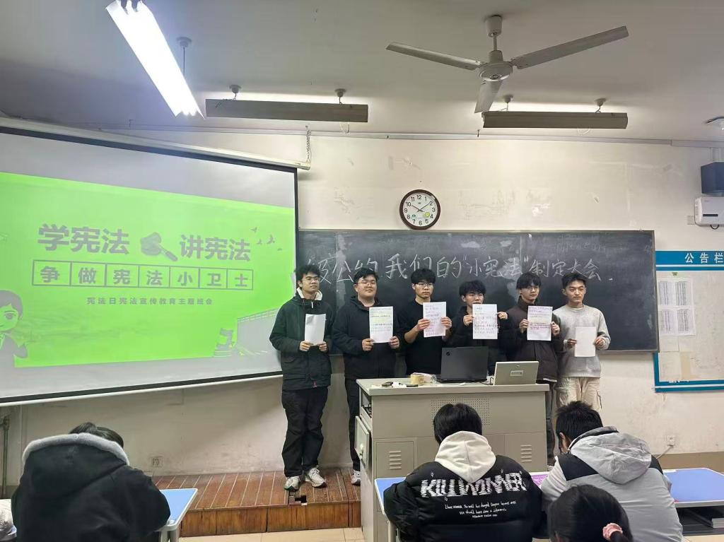 学院还打造系列特色活动:宪法专题讲座结合校园场景拆解知识点并答疑解惑;书法、手抄报创作活动中,同学们以笔墨书写宪法条文、用创意解读法治内涵;“班级公约,我们的‘小宪法’”制定大会上,大家参照宪法原则共拟公约,践行民主理念。此外,趣味套圈、你画我猜等活动将“选举权”“正当防卫”等知识转化为趣味体验,模拟法庭让同学们亲历庭审流程,征文大赛则承载着青年对法治的思考与情怀。