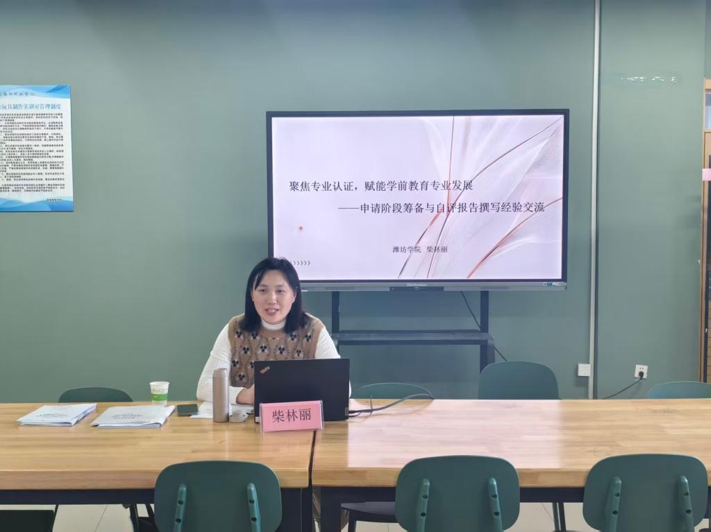 为扎实推进学前教育专业认证工作,全面提升专业建设内涵与人才培养质量,12月10日,教育学院联合质量与评建处举办学前教育师范类专业认证专家指导会。会议特邀潍坊学院教师教育学院副院长柴林丽,围绕“聚焦专业认证,赋能专业发展——申请阶段筹备与自评报告撰写经验交流”主题,开展了系统深入的交流指导。教育学院与质量与评建处相关负责人、学前教育专业负责人、认证骨干教师及相关工作人员共同参会。