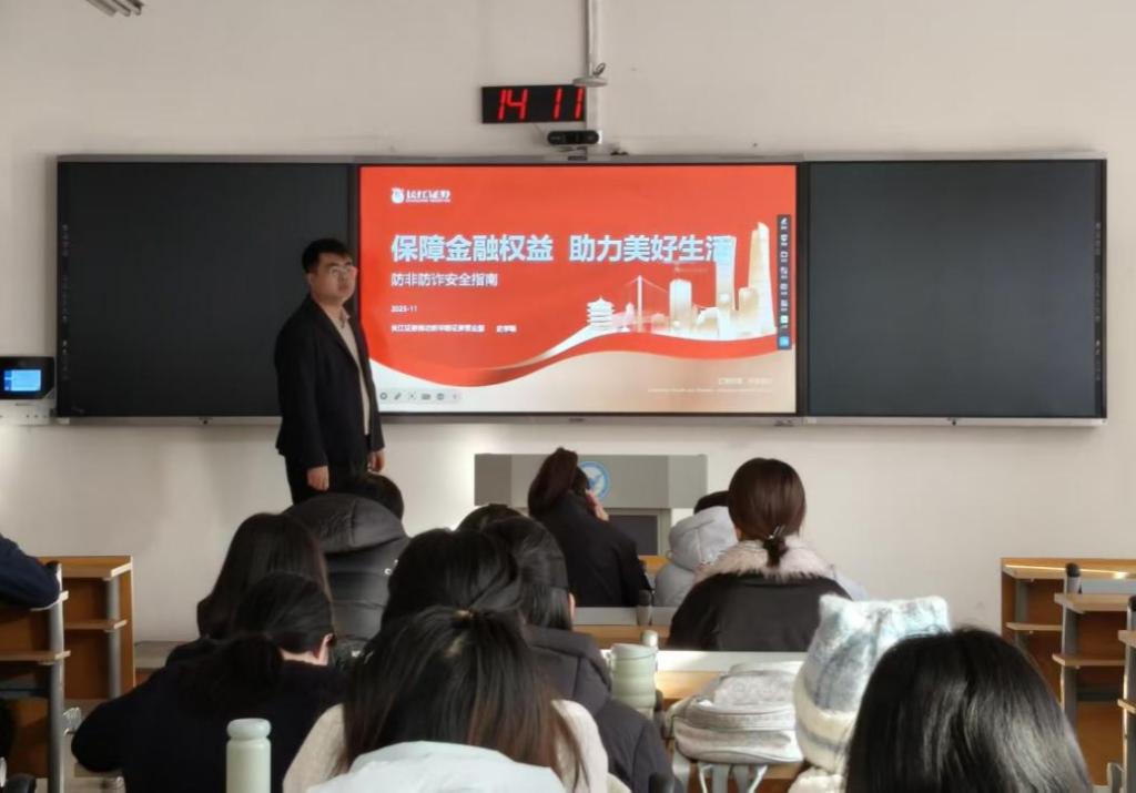 为提升同学们的金融风险防范意识,明晰未来职业发展路径,经济管理学院跨境电商社团于12月10日下午,在经济管理学院E12-108教室成功举办了一场以“防范金融诈骗与证券行业解读”为主题的专题讲座。讲座邀请长江证券资深投资顾问史学聪老师及魏玉婷、赵文静两位行业专家莅临现场,为同学们带来了兼具实用性与前瞻性的精彩分享。