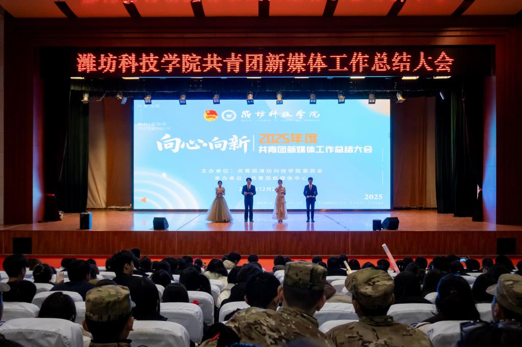 守正创新聚合力,青春逐梦启新程。12月26日,潍坊科技学院2025年度共青团新媒体工作总结大会圆满举行。大会聚焦“向心·向新”的主题,以“光影传情聚力同行、声影逐梦青春绽放、初心赓续共启新程”为篇章,500余名学校共青团新媒体工作者齐聚一堂,全面总结年度工作成效,表彰先进典型,凝聚奋进力量,推动学校共青团新媒体工作高质量发展。