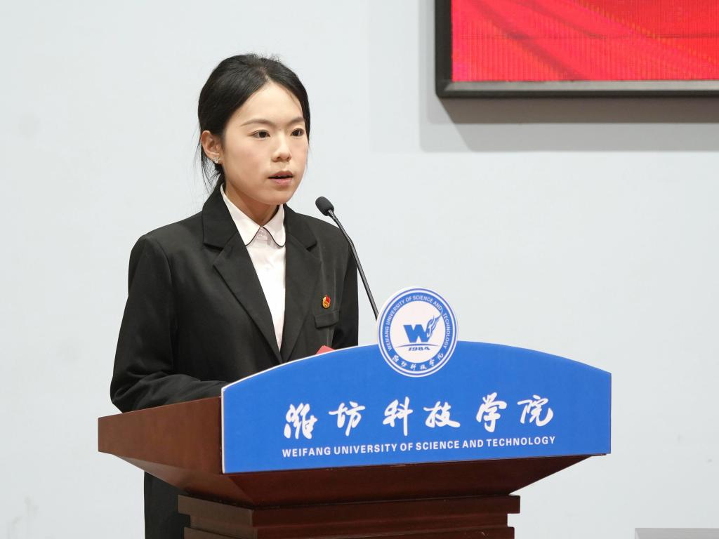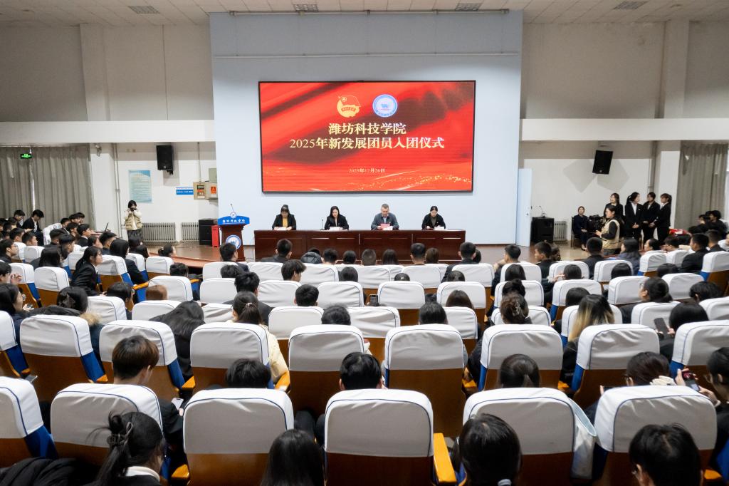 12月26日,潍坊科技学院2025年新发展团员入团仪式在经济管理学院环形报告厅举行。学校团委全体成员、二级学院团总支书记与726名新发展团员齐聚一堂,共同见证这一庄严时刻。