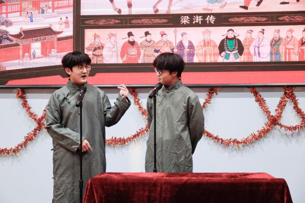 在元旦祝福视频播放后,经济管理学院元旦师生联欢会正式拉开帷幕。经济管理学院院长丁莹莹致开幕词,向全体师生送上诚挚的新年祝福,并对过去一年的工作与发展情况作了全面总结。随后,她表达了对未来一年的美好展望,寄语师生继续携手奋进,共创佳绩。整场晚会亮点纷呈:辅导员们带来的《最炫民族风》歌舞表演点燃全场,亲切的“反差萌”引发阵阵欢呼;刘冰老师献唱《恋爱ing》,展现讲台之外的魅力;街舞、相声、民族舞等节目轮番登场。特别设置的抽奖环节更是掀起高潮,多轮电子产品和文创礼包在热烈掌声中送出。活动最后,全体师生在全场合唱《相亲相爱》的温暖氛围中,共同迎接充满希望的新一年。
