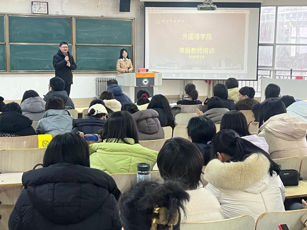 为持续深化外语专业教学改革,夯实课程建设核心基础,全面提升教师专业教学与课程设计能力,3月5日下午,外国语学院特邀学院骨干教师田国卫副教授,开展主题为“外语课程标准设计与制定”寒假教师专题培训。本次培训由学院教学副院长卢恩波主持,全体专任教师参会学习。