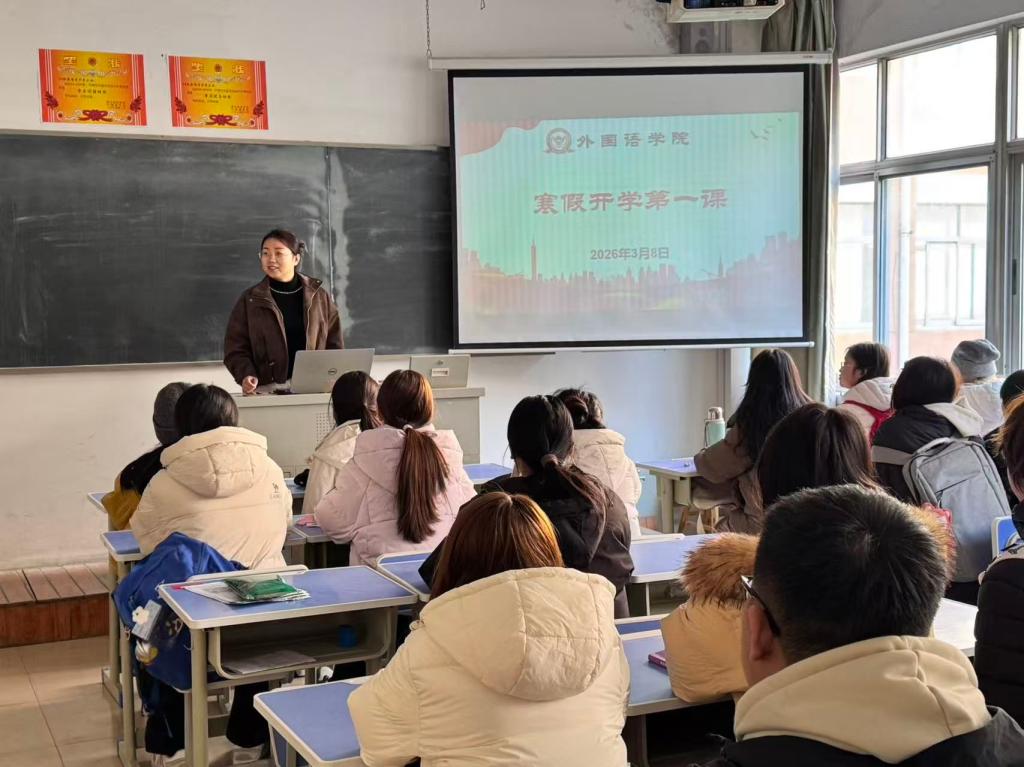 新学期伊始,为帮助学生尽快适应校园生活,以更加昂扬的精神面貌迎接新学期,3月8日,外国语学院组织召开“开学第一课”主题班会。辅导员针对健康教育、职业生涯规划等重点内容,深入各班级开展专题教育,为新学期各项工作开好头、起好步奠定坚实基础。
