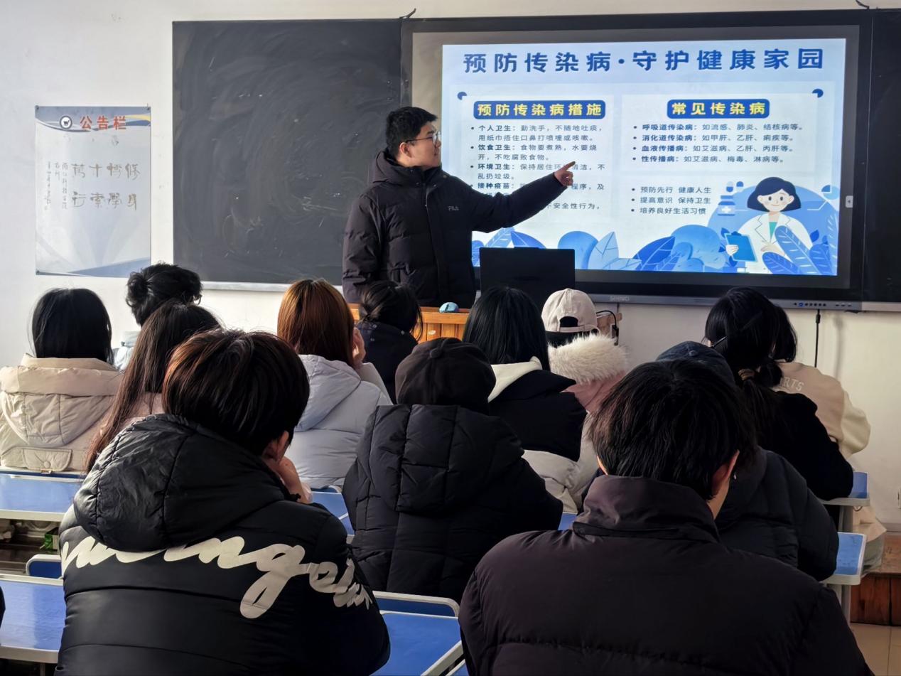 学院以班级为单位开展“健康护航·春季防病”主题班会,聚焦流感、诺如、手足口病、春季过敏等常见病症,通过知识讲解、案例分享帮助学生掌握防护要点,将科学防疫理念根植于心。同时举办春季传染病预防知识竞赛,内容涵盖症状、传播途径、预防方法等,兼具知识性与趣味性,同学们在比拼中巩固所学,营造了“人人学健康、人人懂防护”的良好氛围。在环境整治方面,学院发起校园卫生大扫除与重点区域消杀倡议,组织学生对教室、卫生间、公共活动区域进行全面清洁,清理卫生死角,严格落实“勤通风、勤打扫、勤消毒”要求,从源头切断传染病传播途径。此外,学院还开展主题展板与手抄报创作活动,鼓励学生围绕科学防疫、均衡饮食、规律作息、适度运动、卫生习惯等维度创作宣传作品,优秀作品在学院展出,让防病知识“看得见、记得牢、用得上”。