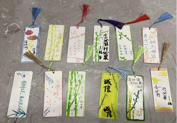 “指尖诚信,书韵流芳”诚信主题书签制作活动同步开展,活动将诚信文化与手工艺术有机融合。同学们以卡纸、彩笔等为材料,将诚信名言、廉洁理念融入创意设计,亲手制作出专属诚信书签。精致的书签既是实用手工作品,也是坚守诚信的“随身信物”,让学生在动手实践中深化诚信认知,真正将诚信种子根植于心、外化于行。