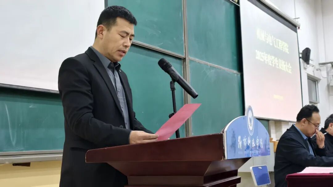 为进一步弘扬优良学风,充分发挥先进典型的示范引领作用,凝聚青年学子奋进力量,机械与电气工程学院在001合堂教室召开2025年度学生表扬大会。学院院长黄宗经,校学工处副处长、学院党委书记蔺鹏,教学副院长刘春瑞,科研副院长张俊玲,办公室主任李爱海及全体辅导员与学院优秀学生代表共同参会,学院团总支书记赵文明主持。