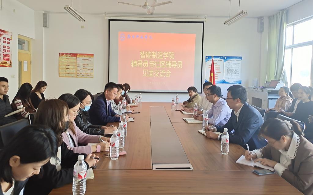 为进一步提高辅导员队伍建设水平,促进学院与社区之间的交流,更好地了解学生的学习、生活状况,智能制造学院召开学院辅导员与社区辅导员见面交流会。智能制造学院党支部书记张庆荣,学工处副处长杨国栋,智能制造学院社区辅导员及学院辅导员参加。