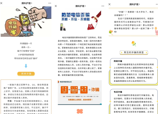 护理学院通过主题班会的形式,向2020级新生介绍了什么是校园贷、校园贷款的危害及类型等,警惕学生理性消费,谨慎提供个人信息,遇到无法解决的问题及时报警解决;同时结合全国首例“刷单炒信入刑案”,从法律角度分析了在刷单黑市中,刷手毫无权利保障可言,提示学生不要盲目相信高回报,谨防上当受骗;此外,护理学院宣传中心也就防诈骗做了一系列宣传,进一步提高学生的防骗意识和防骗能力。