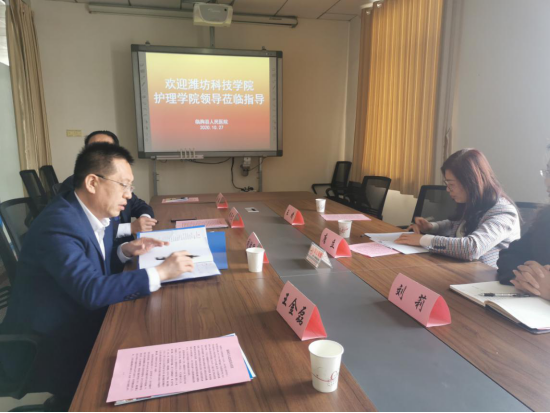 签约仪式后,双方就今后合作教学的具体事宜进行了深入座谈。临朐县人民医院党支部书记刘洪军介绍了医院的基本情况,对我校护理学院办学模式及人才培养质量表示肯定,对共建校外实践教学基地表示深切的期望。