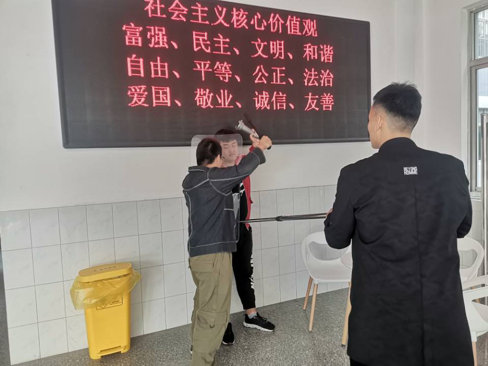 演练开始,一名“暴徒”手持“凶器”试图闯入教学楼,对学生安全造成威胁,保卫人员发现后,立即报警并报告应急指挥组,出动应急防爆小分队,防暴组成员手持器械及时赶到教学楼门口阻止“暴徒”进入,相互合作制服“暴徒”后等待警察到来。商务技术学院安全保卫负责老师申良对此次演练进行总结,强调要严格遵守日常规范及各项规章制度,完善反恐防暴应急处置机制,防患于未然。
