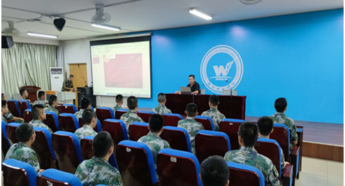 近日,马克思主义学院倪鑫博士受邀为士官学院作《战争今晚就打响》军事理论讲座。士官学院2018级海军、战支学员100余人参加。