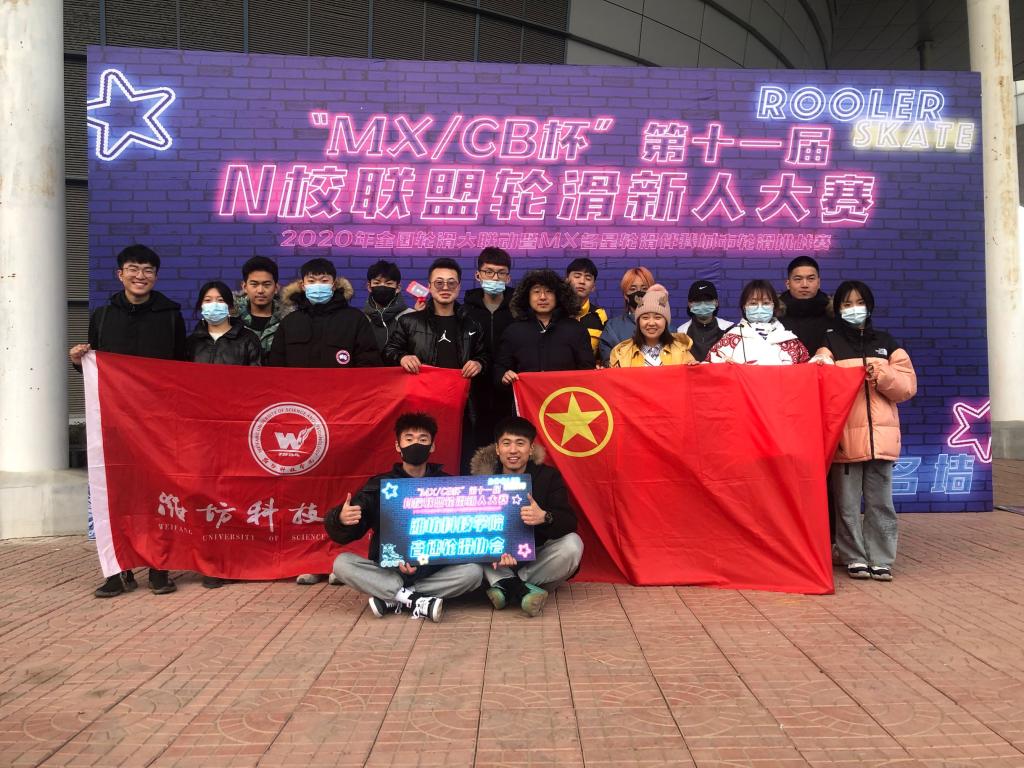 11月29日,由中国轮滑协会主办,济南玄之又玄文化传媒有限公司、N校联盟(中国)赛事委员会、历城区轮滑运动协会承办的第十一届N校联盟轮滑新人大赛——2020年全国轮滑大联动暨MX名星轮滑伴我城市轮滑挑战赛在济南市历城区体育中心内举行,潍坊科技学院音速轮滑协会积极参加此次活动,并取得NSCR基础过桩女子组第一名一项,NSCR基础速滑男子组第六名一项的优异成绩。