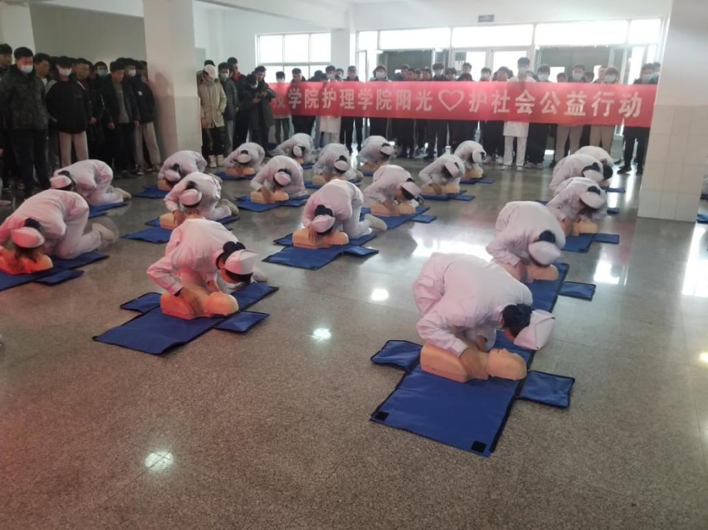 为推进潍坊科技学院阳光“心”护社会公益行动,提高师生应急救护知识和技能,牢固树立自救与求救意识,12月4日下午,机电技术学院联合阳光“心”护社会公益行动志愿服务队举办应急救护演练活动。机电技术学院全体师生参加。