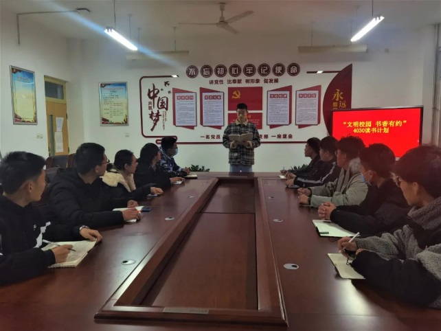11月25日,机电技术学院举办“文明校园,书香有约"4030读书计划座谈会,学生代表焦鑫浩就推荐书籍、读书方法、如何在读书中提高自身综合素质等与大家进行交流探讨,同学们积极交流自己的读书心得。大家表示要制订出读书计划,多读书,读好书,以书籍陶冶情操,提升素养,做新时代文明大学生。
